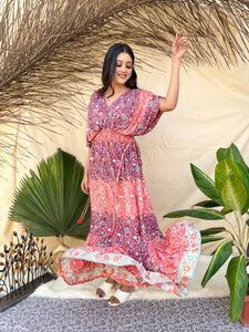 Balloon Sleeves Two Shade Boho Maxi Dress