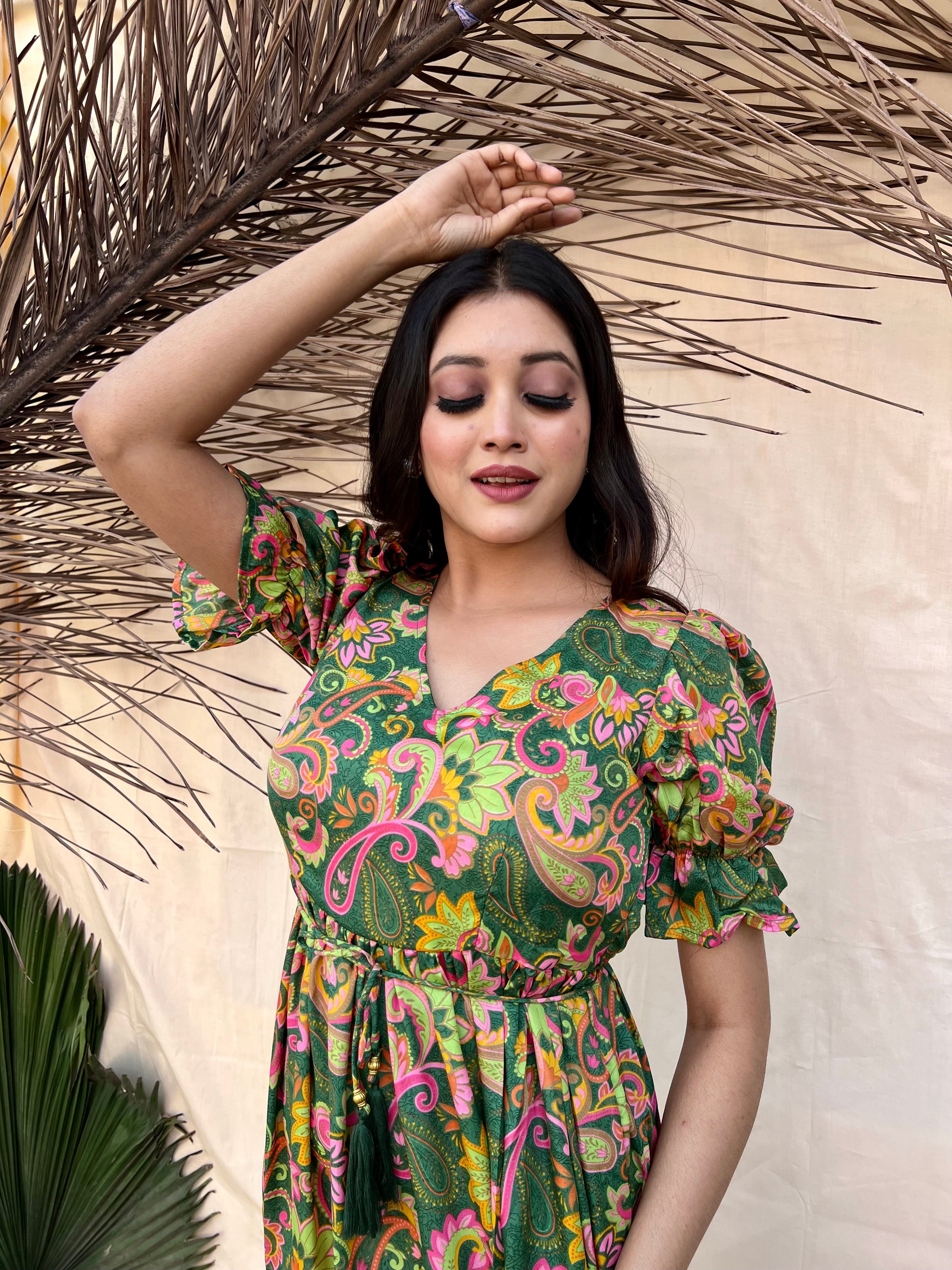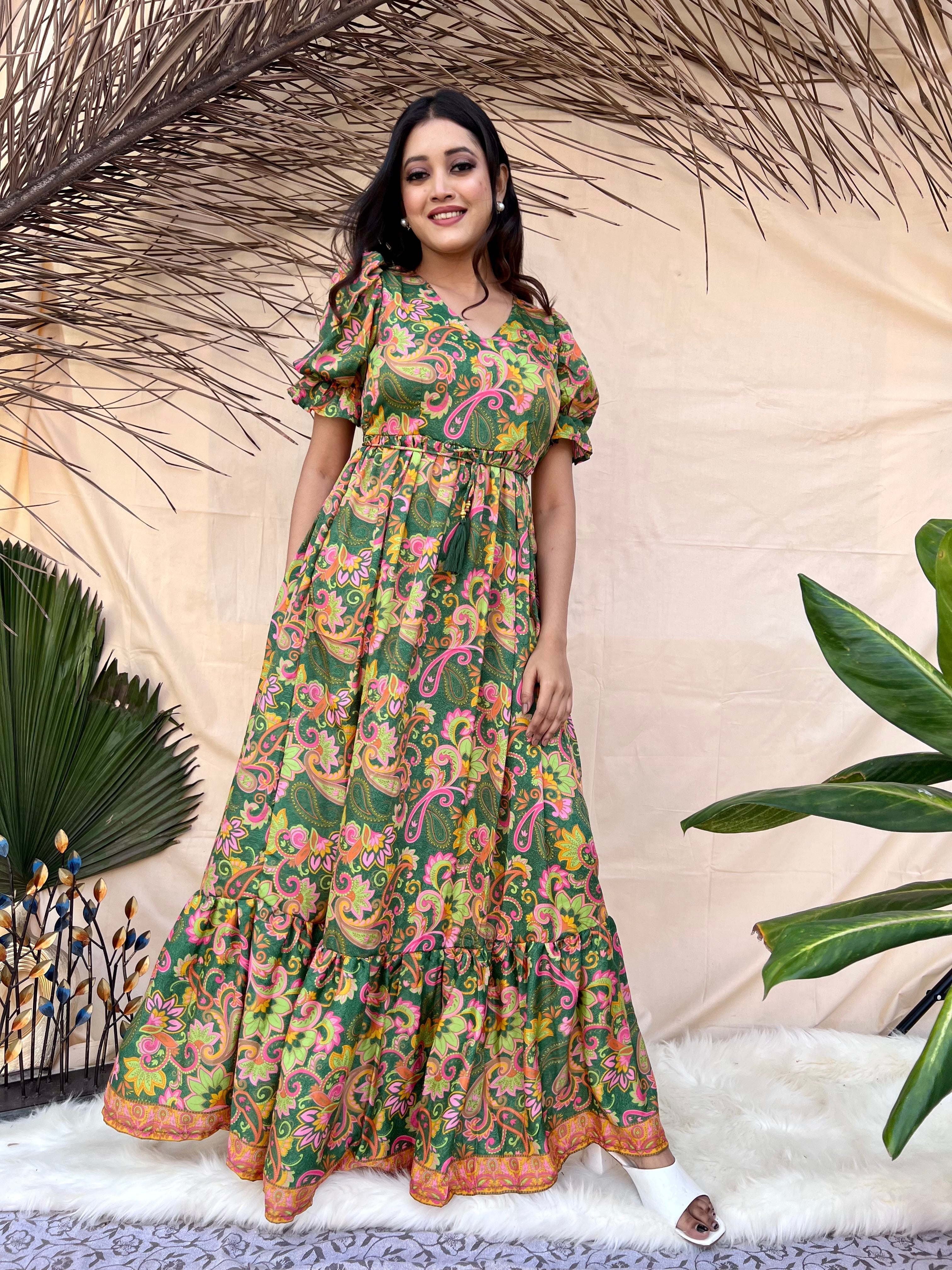 Draped in deep green hues, this boho maxi dress whispers tales of mystique and earthy charm. A symphony of style for the free spirits. 🌙✨ #BohemianElegance #MaxiMood