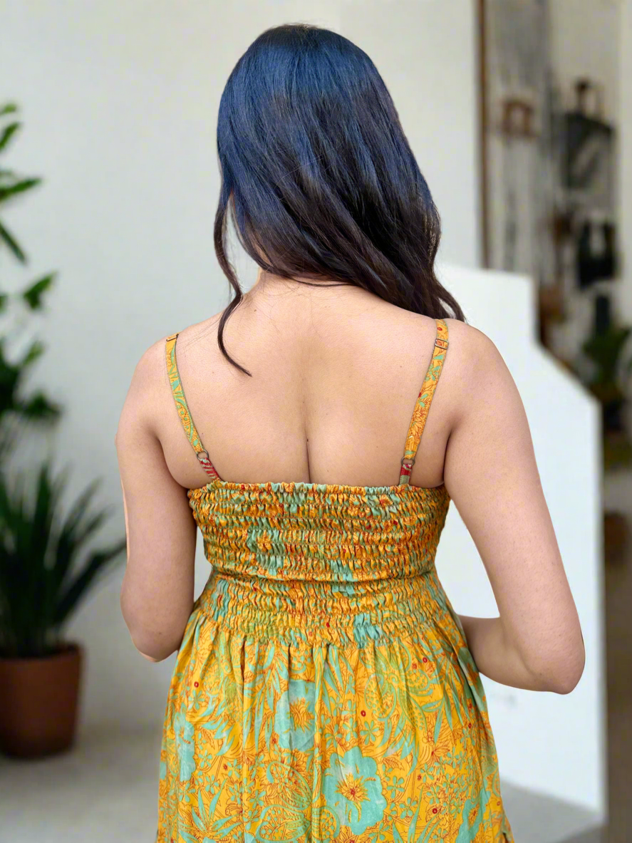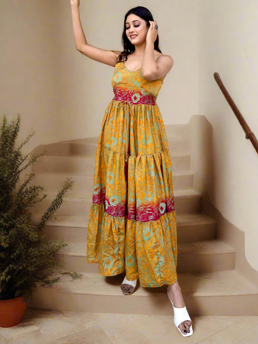 Channel your inner free spirit with this vibrant yellow floral Boho dress for women. With its flowing silhouette and whimsical floral pattern, it's perfect for embracing sunny days and carefree adventures. Let your style bloom!
