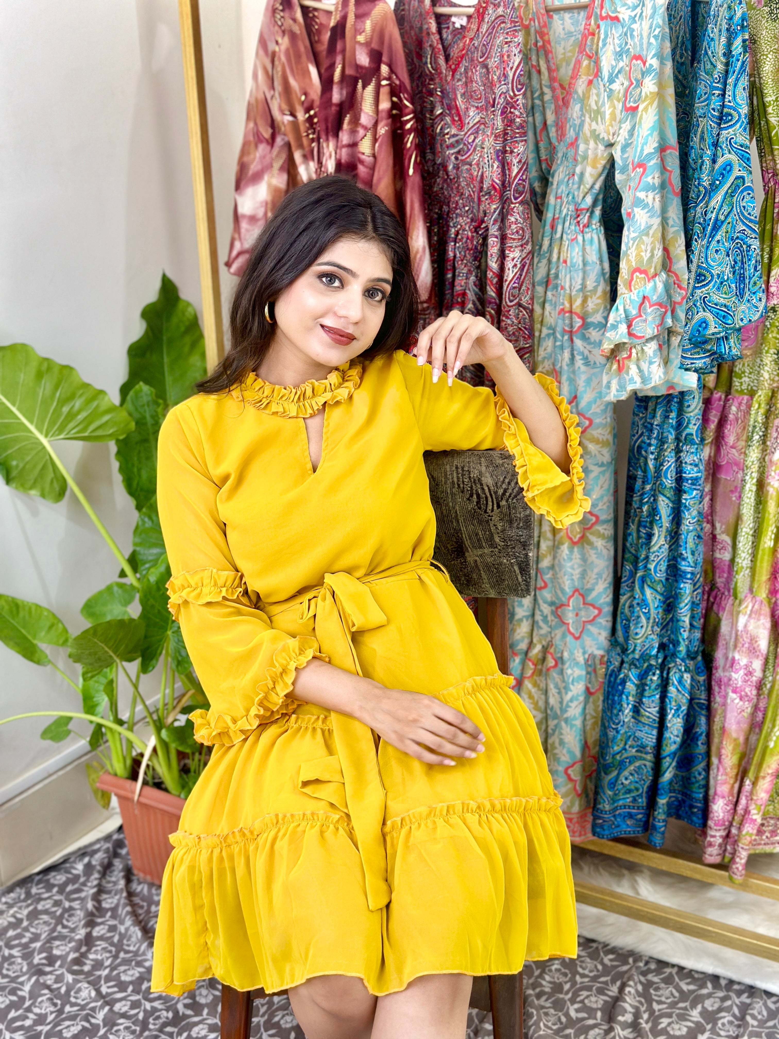 This dress is perfect for those looking to make a statement with a blend of elegance and playful style.luxurious georgette fabric ensures a sophisticated yet approachable look.