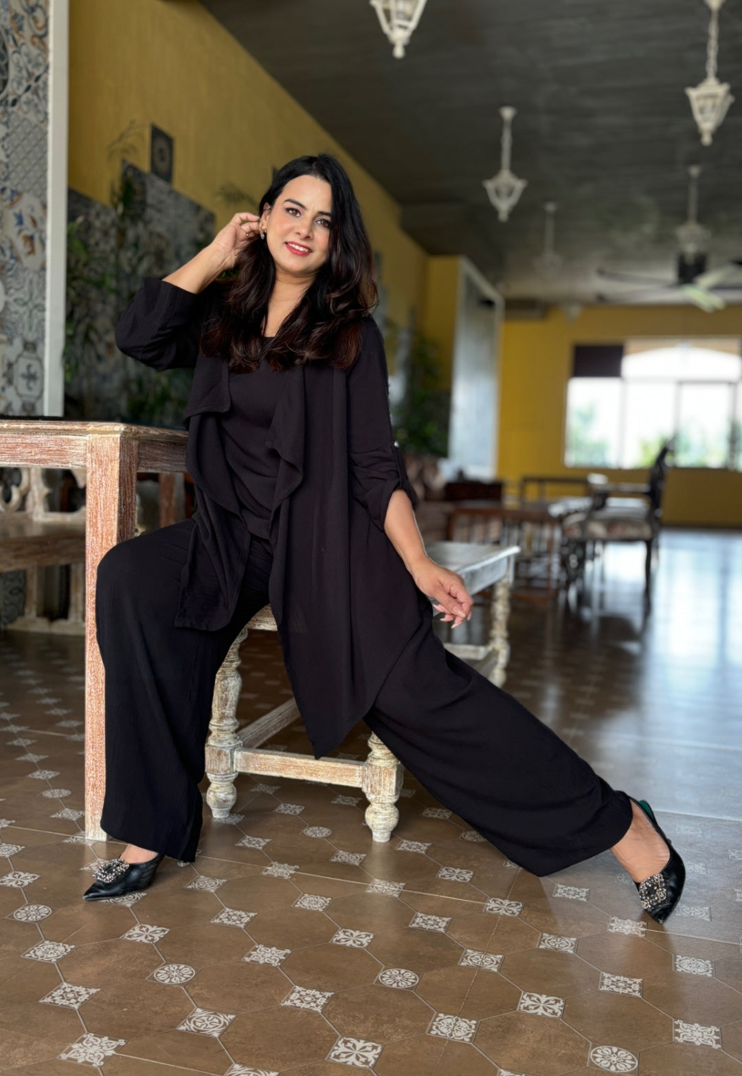 đź–¤ Black 3-Piece Co-ord Set with Shrug