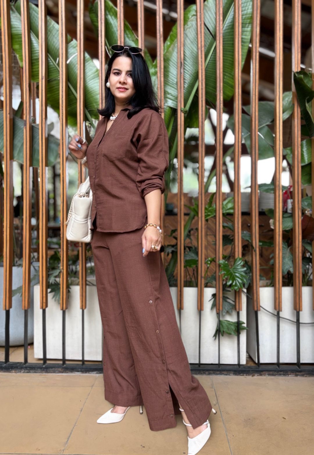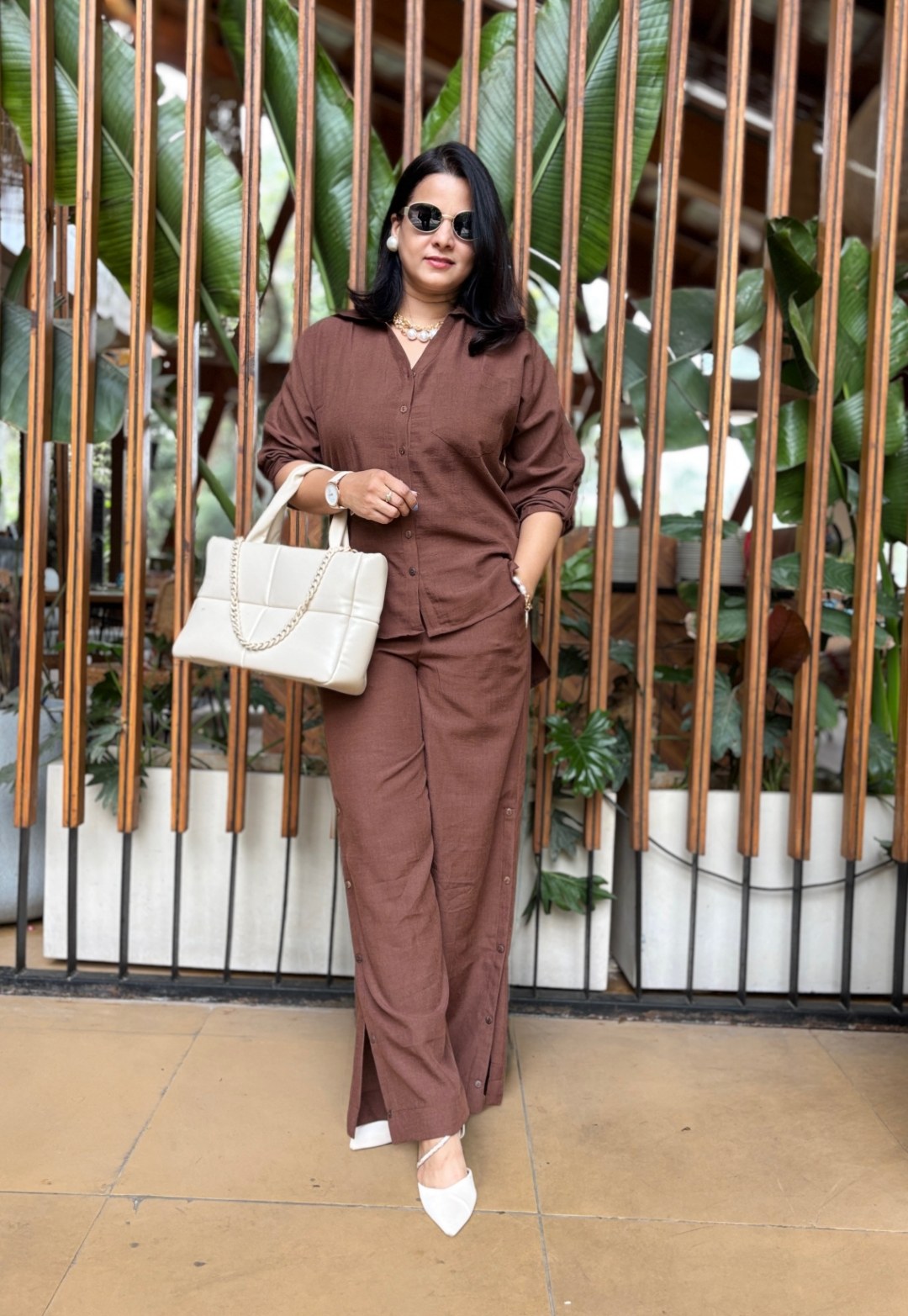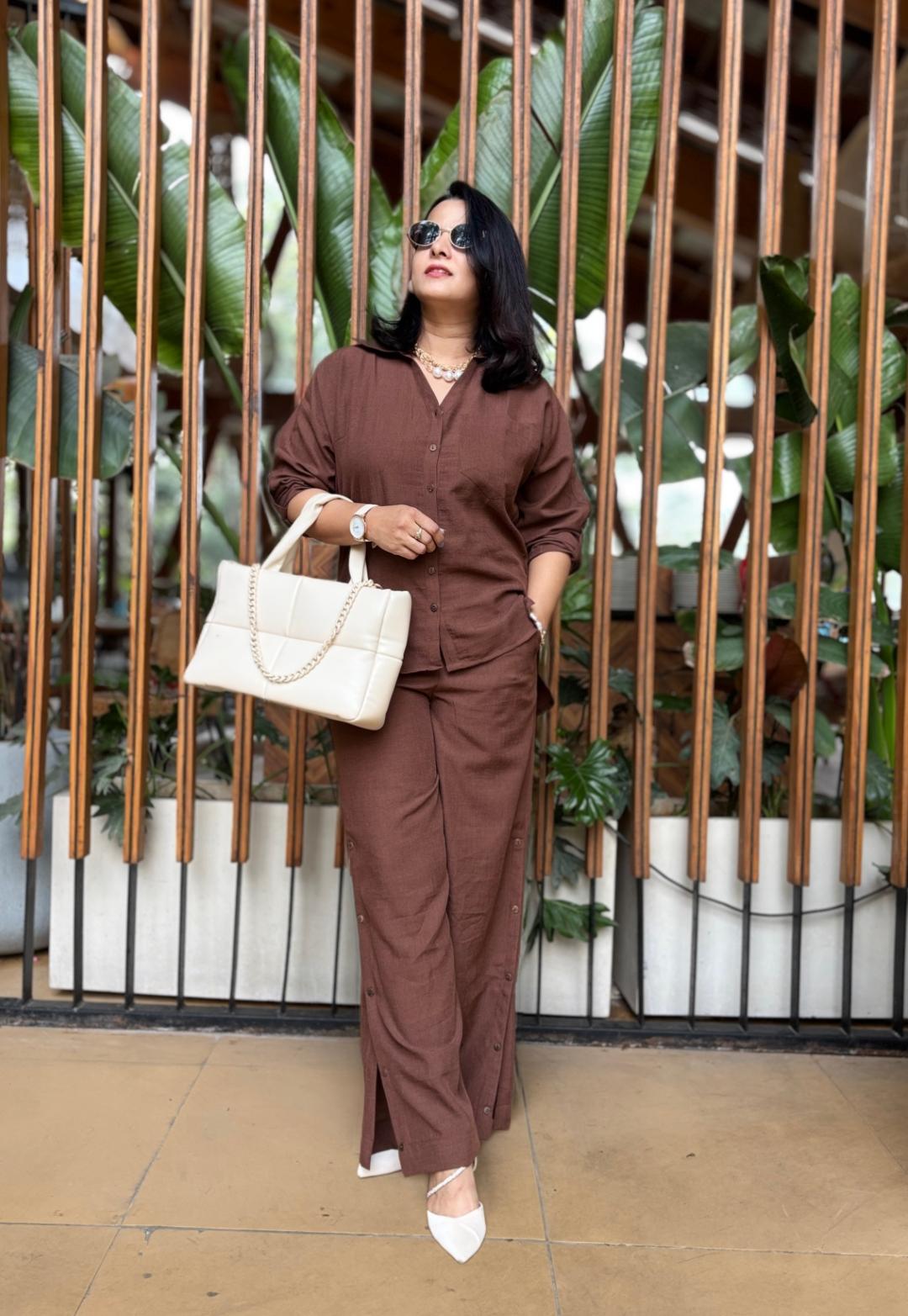 Earthy, refined, and versatile—this brown co-ord set is your go-to choice for effortless elegance. With a breathable cotton-lycra blend, statement button accents, and a flattering fit, this two-piece outfit is as practical as it is stylish.