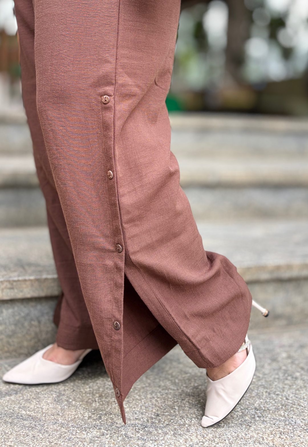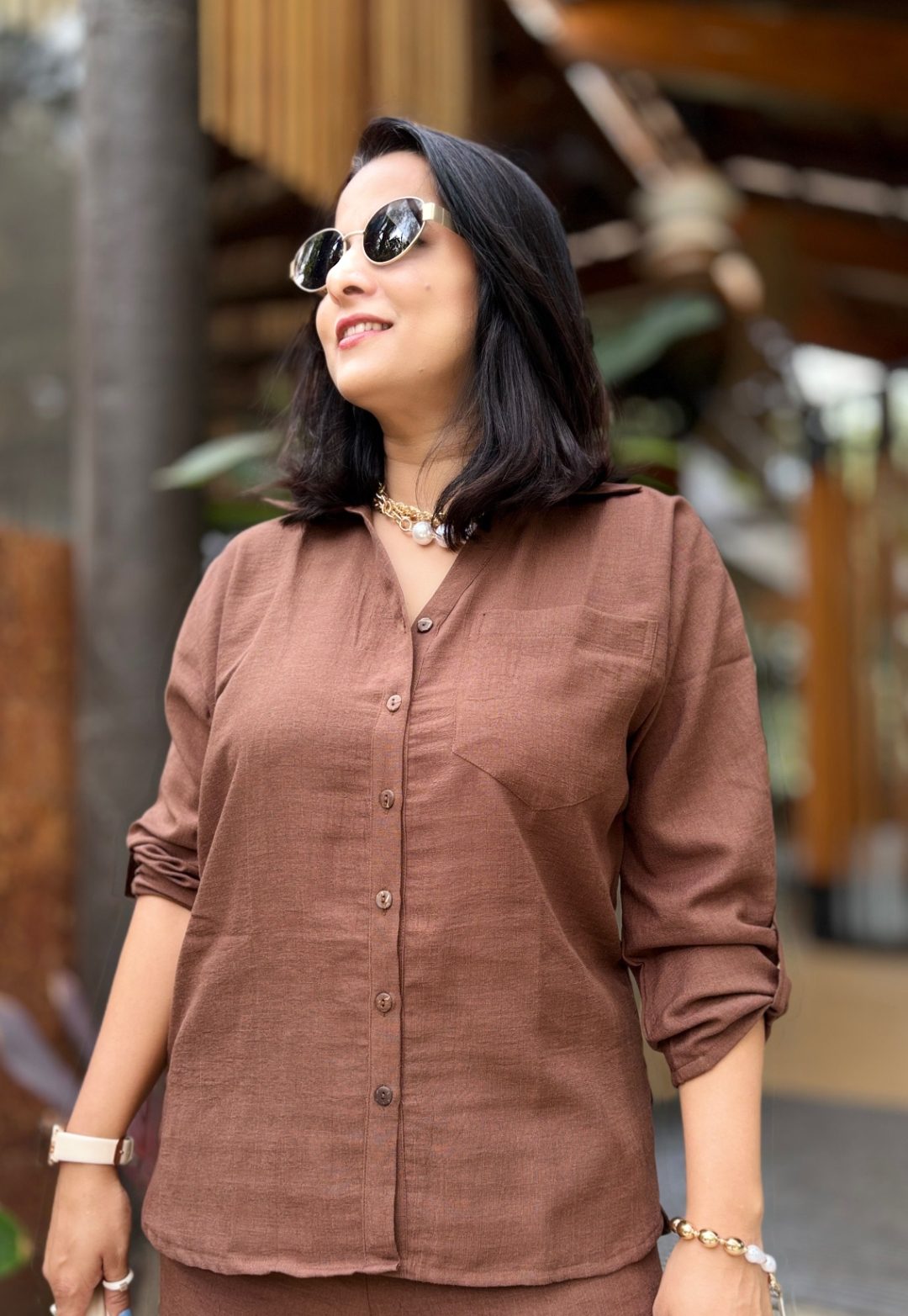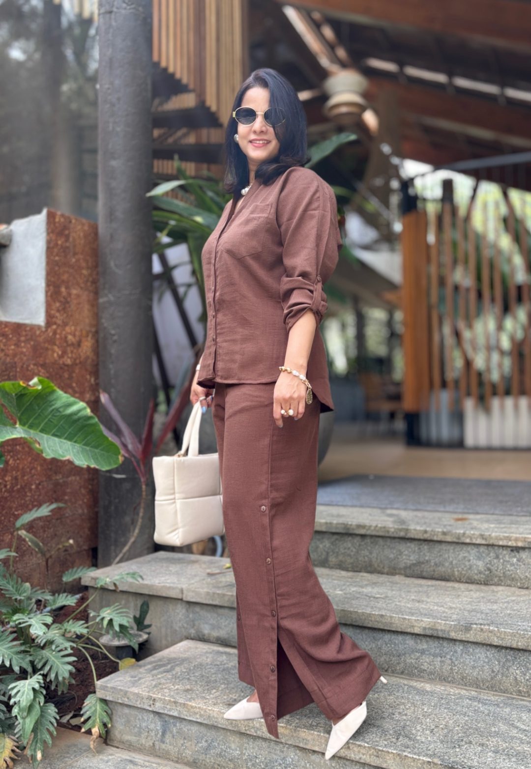 Earthy, refined, and versatile—this brown co-ord set is your go-to choice for effortless elegance. With a breathable cotton-lycra blend, statement button accents, and a flattering fit, this two-piece outfit is as practical as it is stylish.