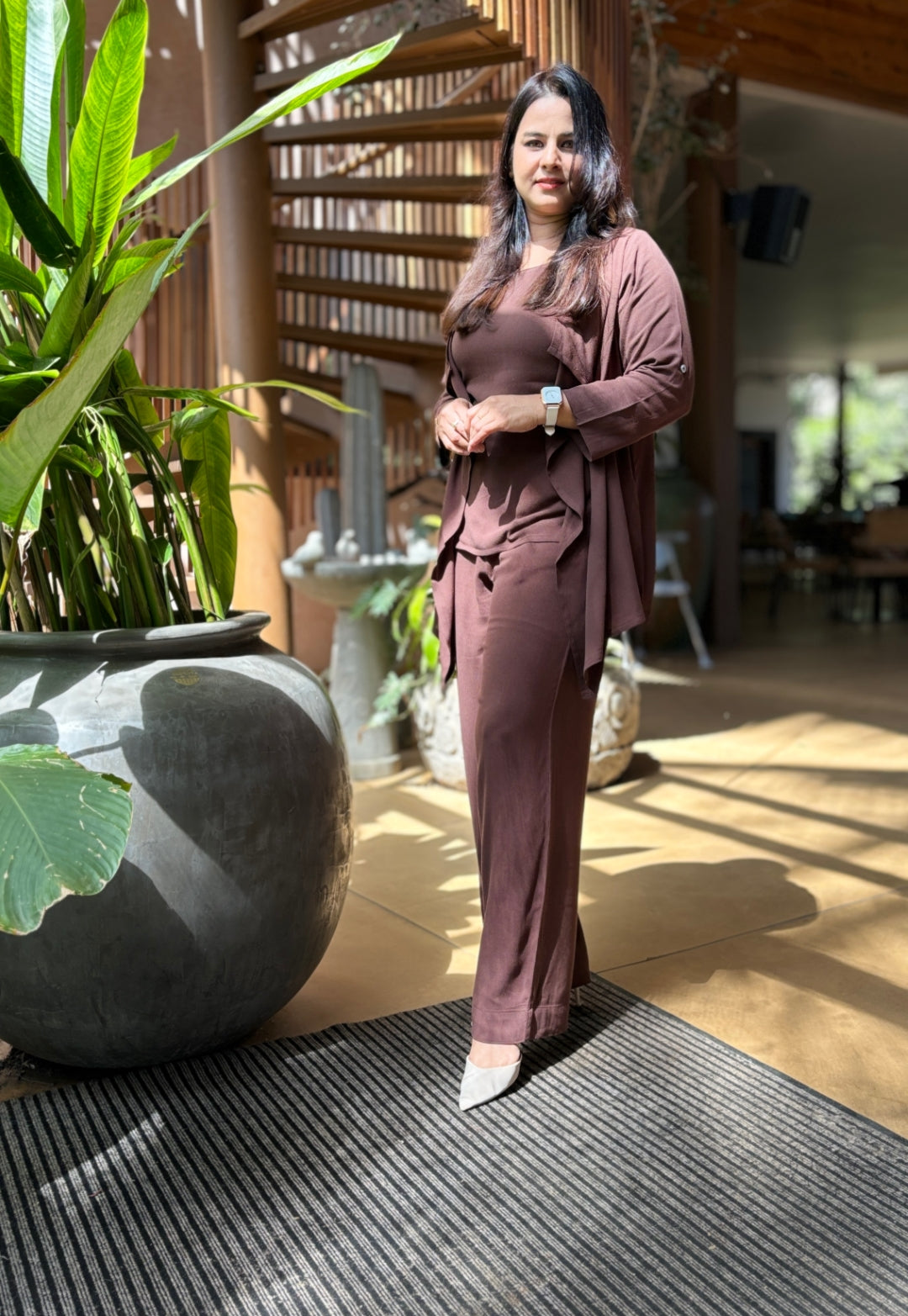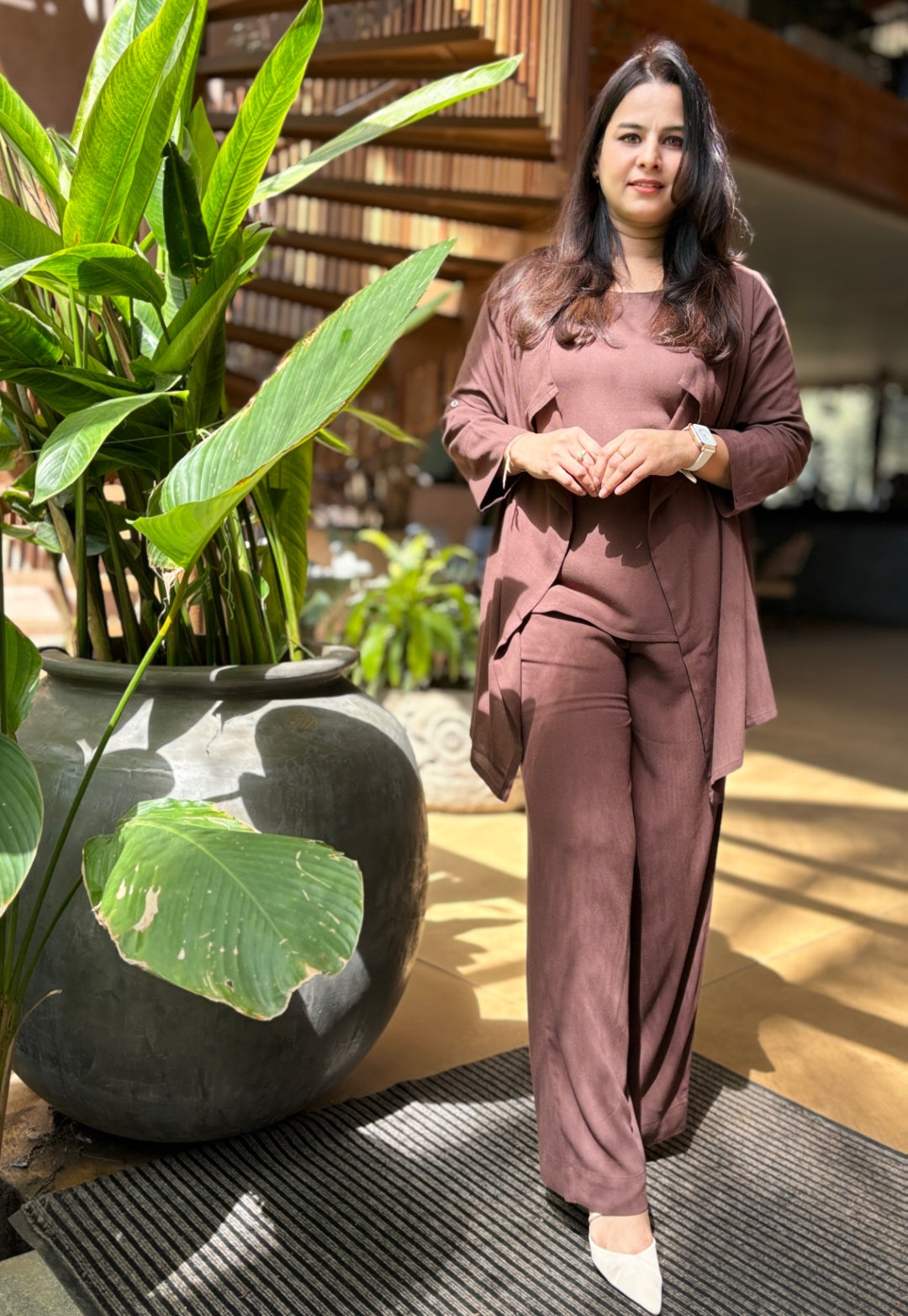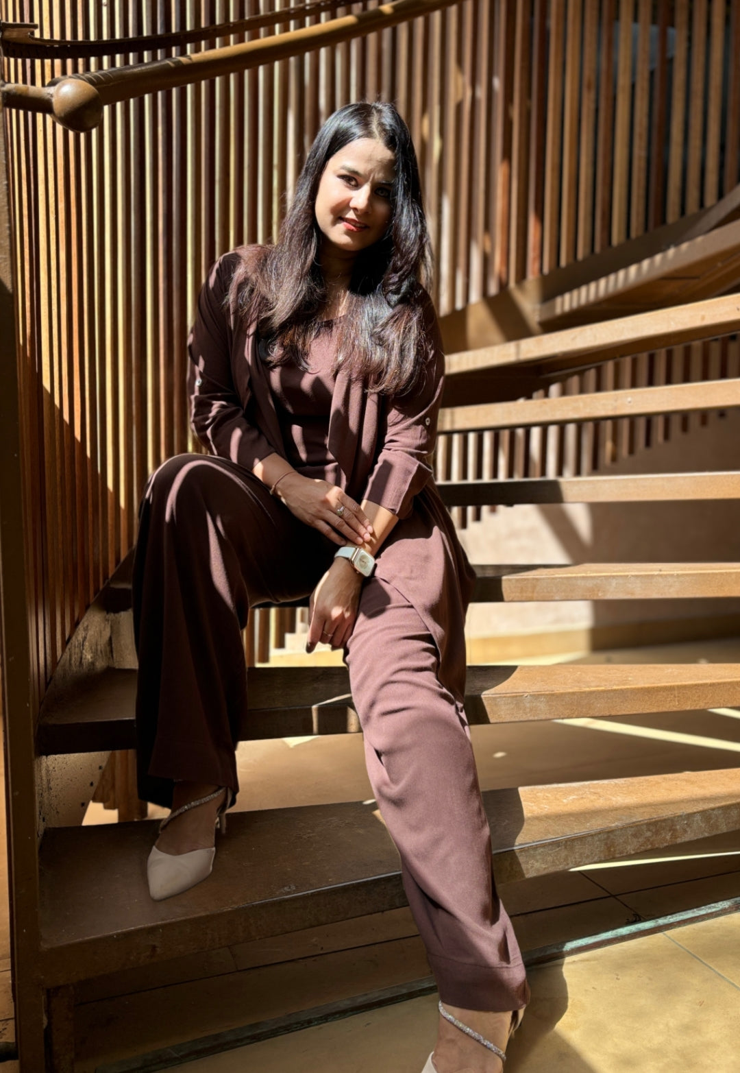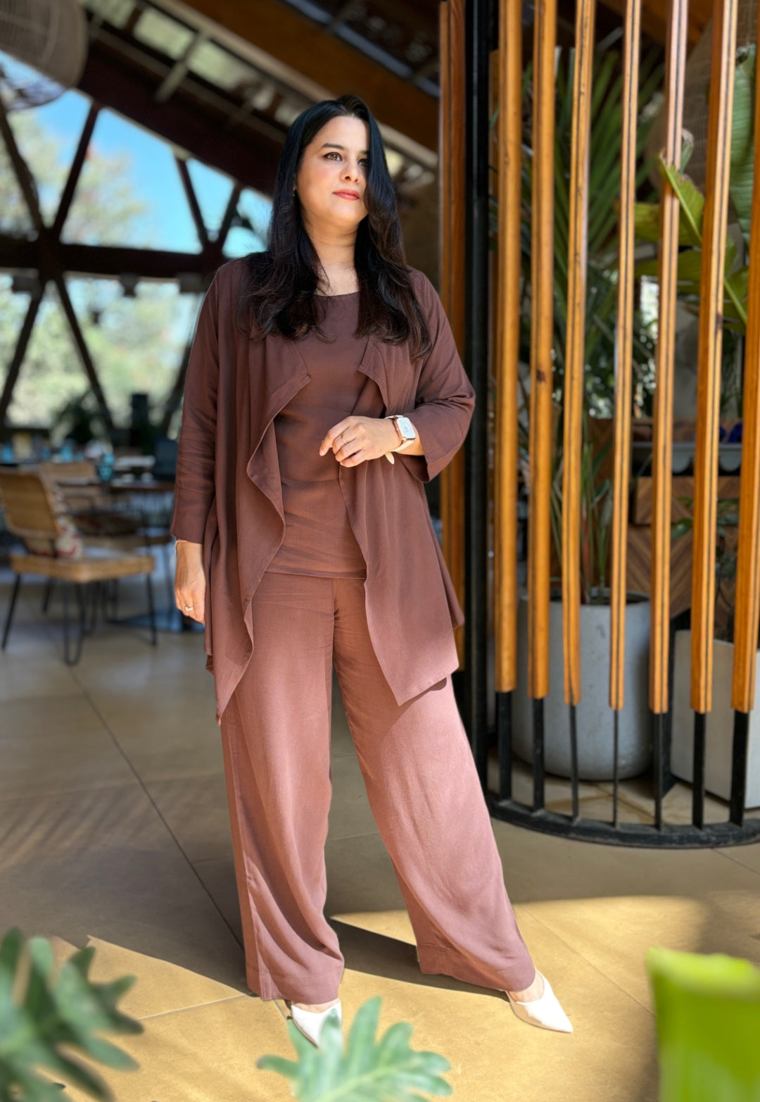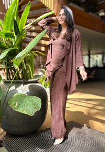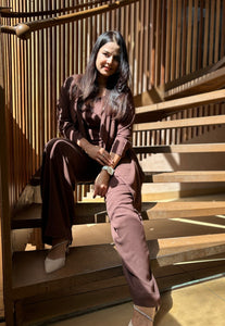 Dark Brown 3-Piece Co-ord Set with Shrug