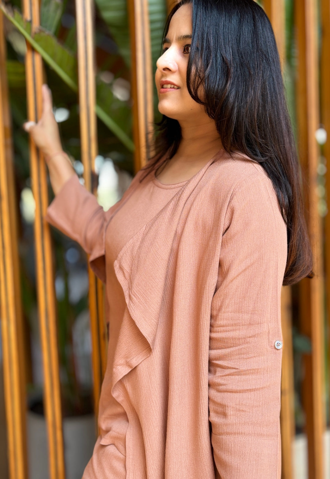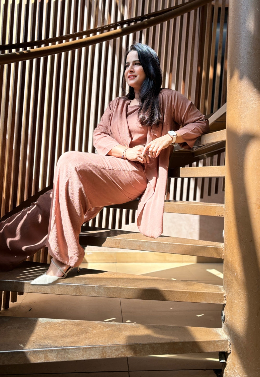 🤎 Light Brown 3-Piece Co-ord Set with Shrug