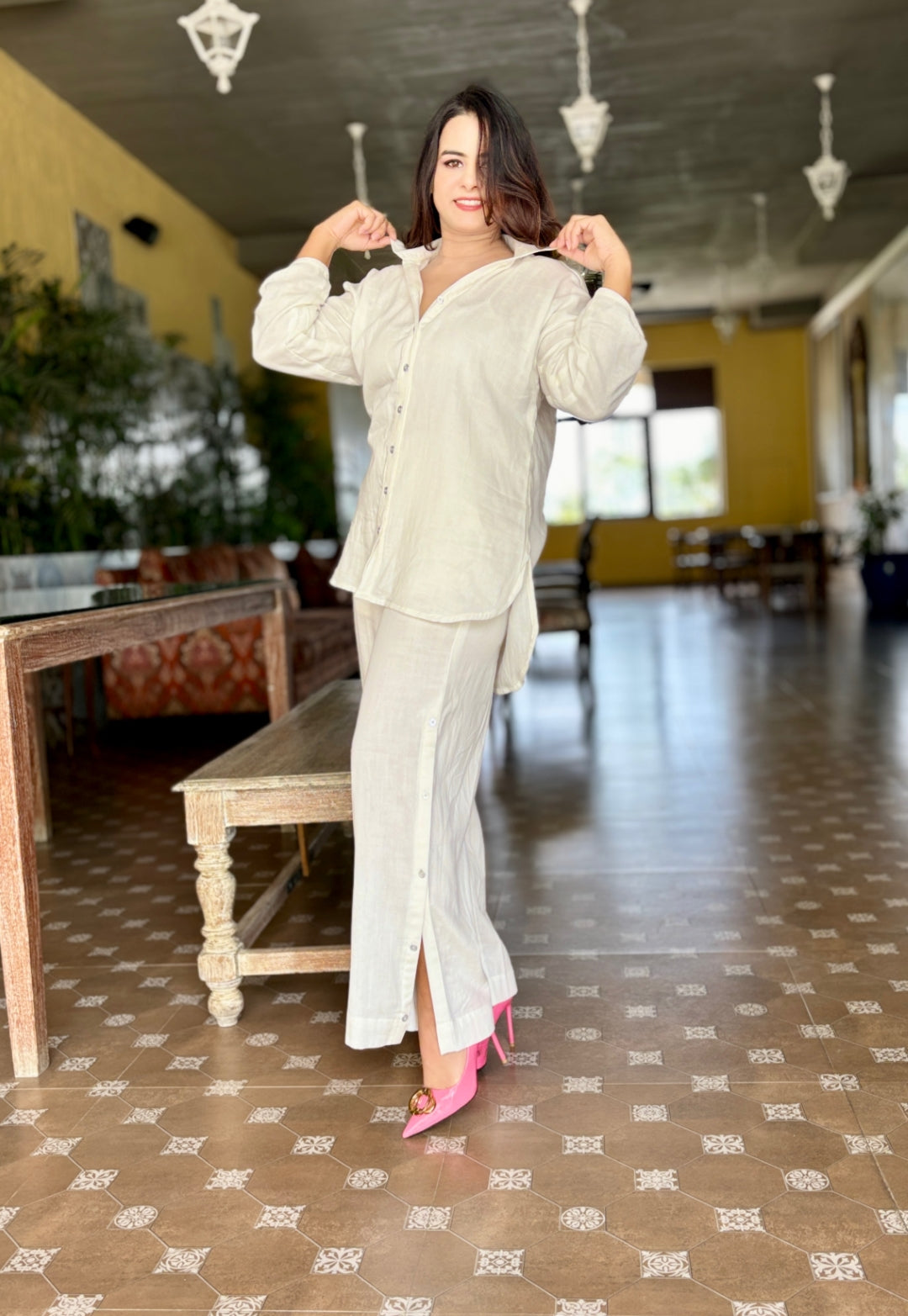Clean, classic, and endlessly versatile—this white co-ord set is a wardrobe essential for lovers of elevated basics. Crafted from a soft cotton-lycra blend, it features statement button details and an easy silhouette designed for both style and comfort.