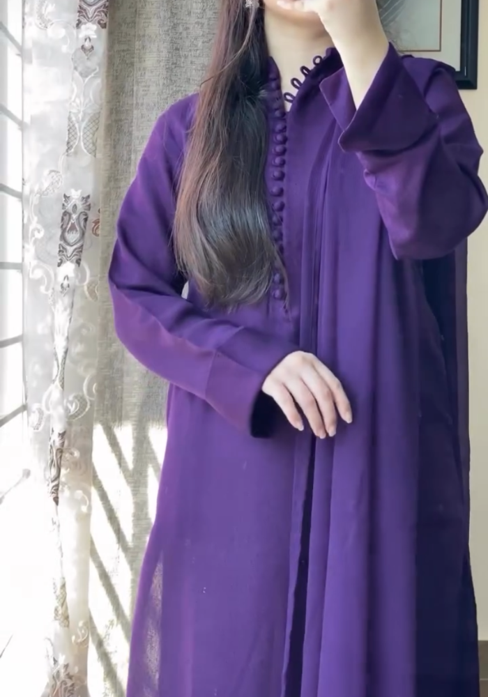 To complete the look, the set includes a Chiffon Dupatta that adds a touch of grace and allure. The sheer and lightweight fabric drapes beautifully, enhancing the overall appeal of the ensemble.