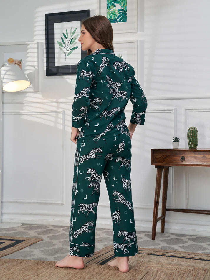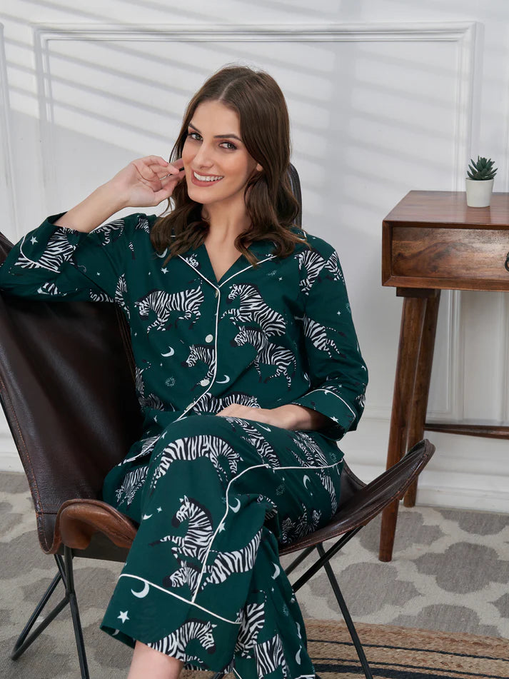 For all animal lovers, this wild and wondeful Zebra set in Pure cotton will make bedtime more fun. The comfy set features a long-sleeved shirt with a chic notched collar and regular trousers with our signature drawstring waistband.