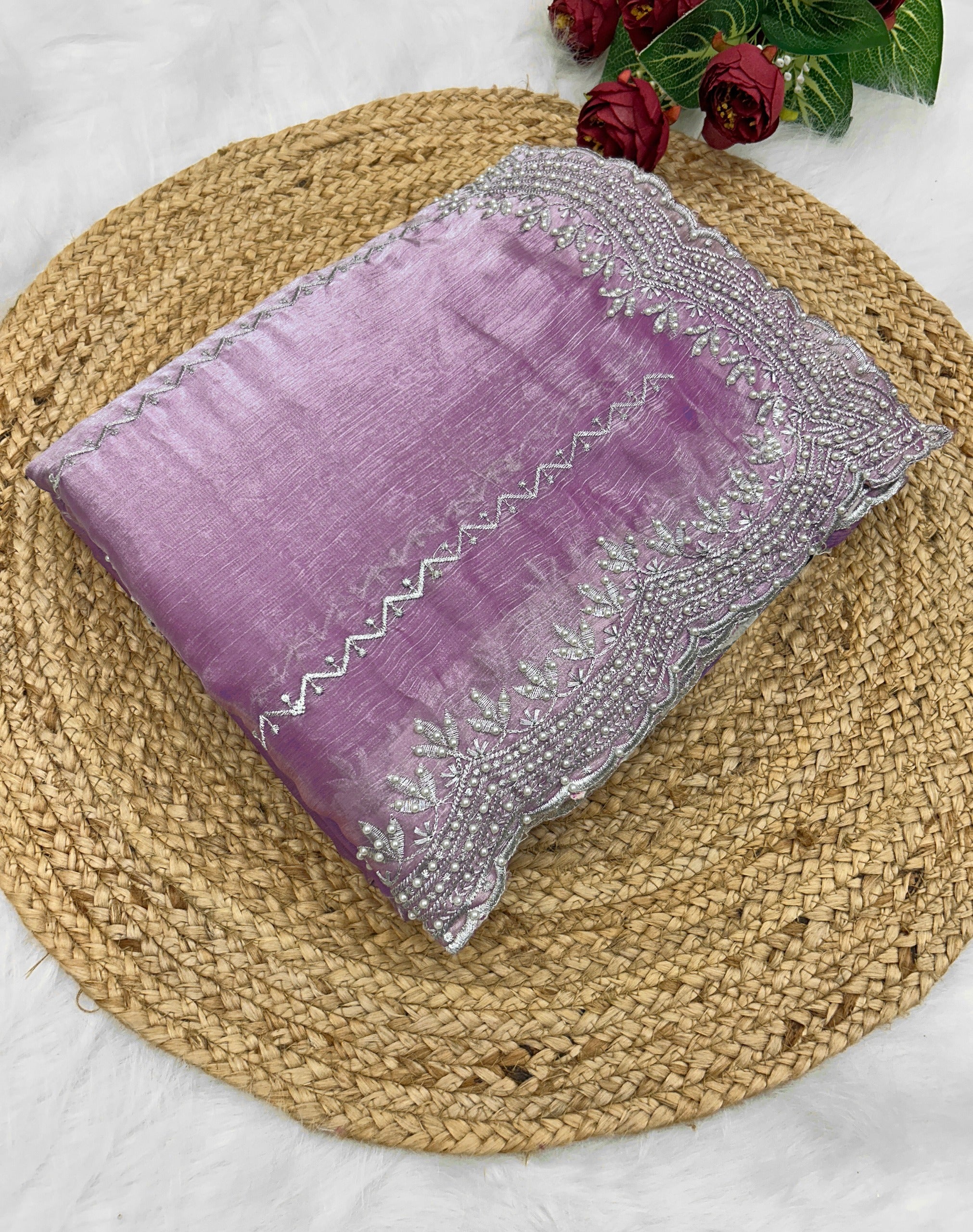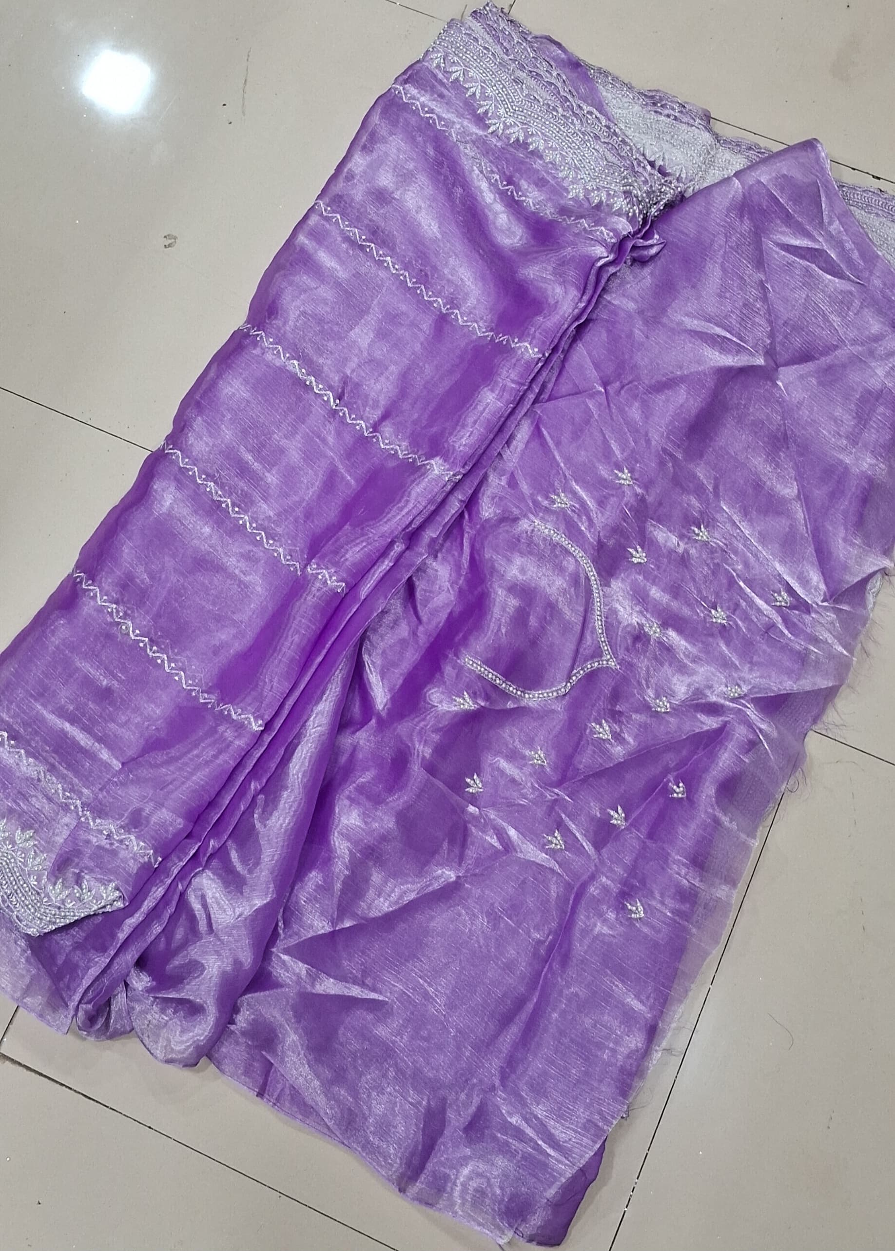 *Blouse : jimmy Choo Fabric With Heavy Zari embroidery Dana Handwork work  * ( Material )