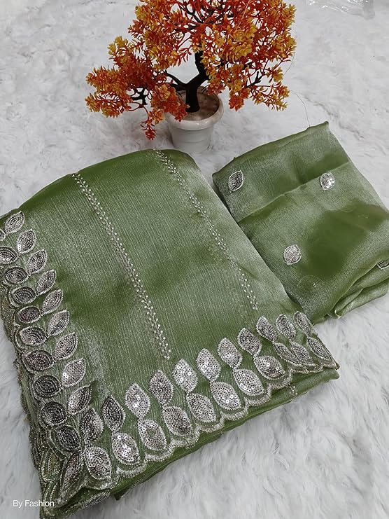 • SAREES FABRIC.:-Pure soft Jimmy choo silk sarees with amazing 3 mm sequence work with work border