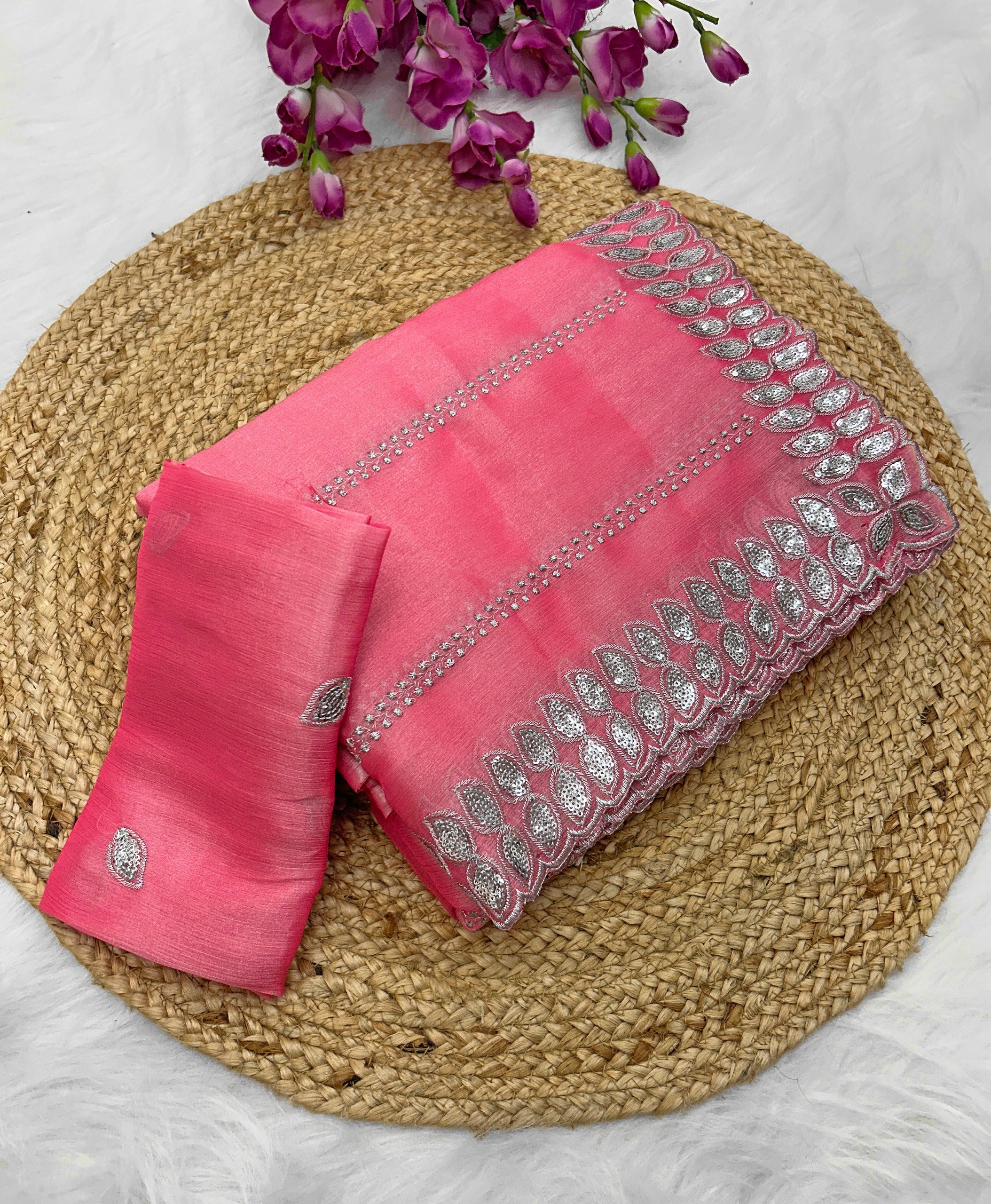 • SAREES FABRIC.:-Pure soft Jimmy choo silk sarees with amazing 3 mm sequence work with work border