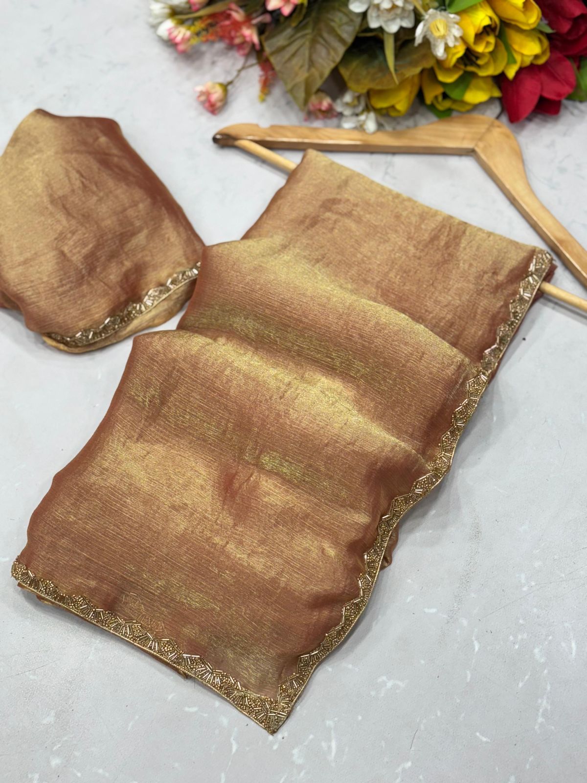 Name : Womens Fendy chiffon zimmy choo silk saree with lace border