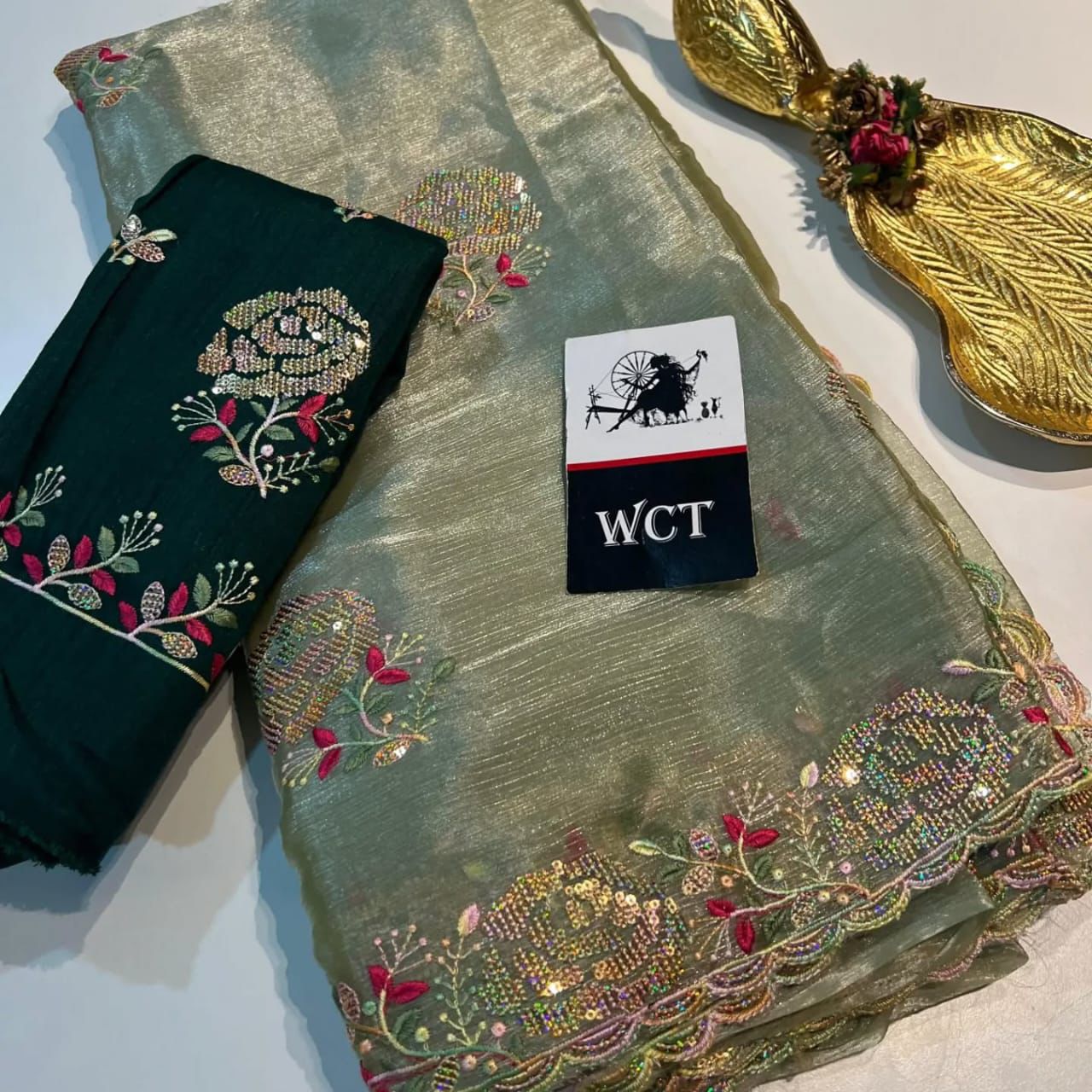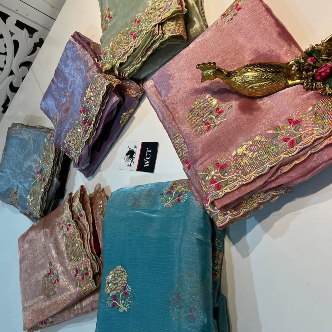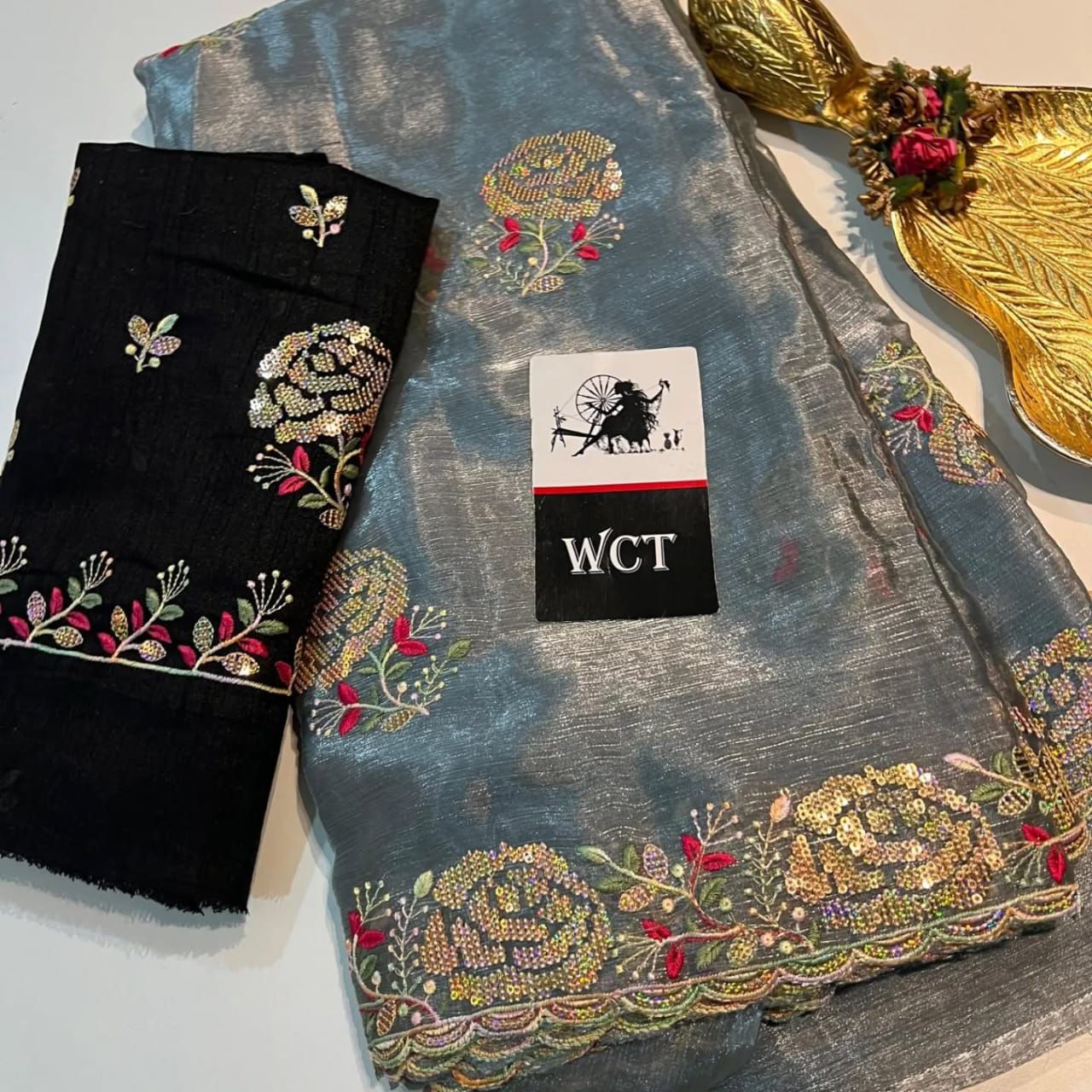 Beautiful premium Quality Jimmy choo Designer Saree with Beautiful Sequence Embroidery C-Pallu Saree