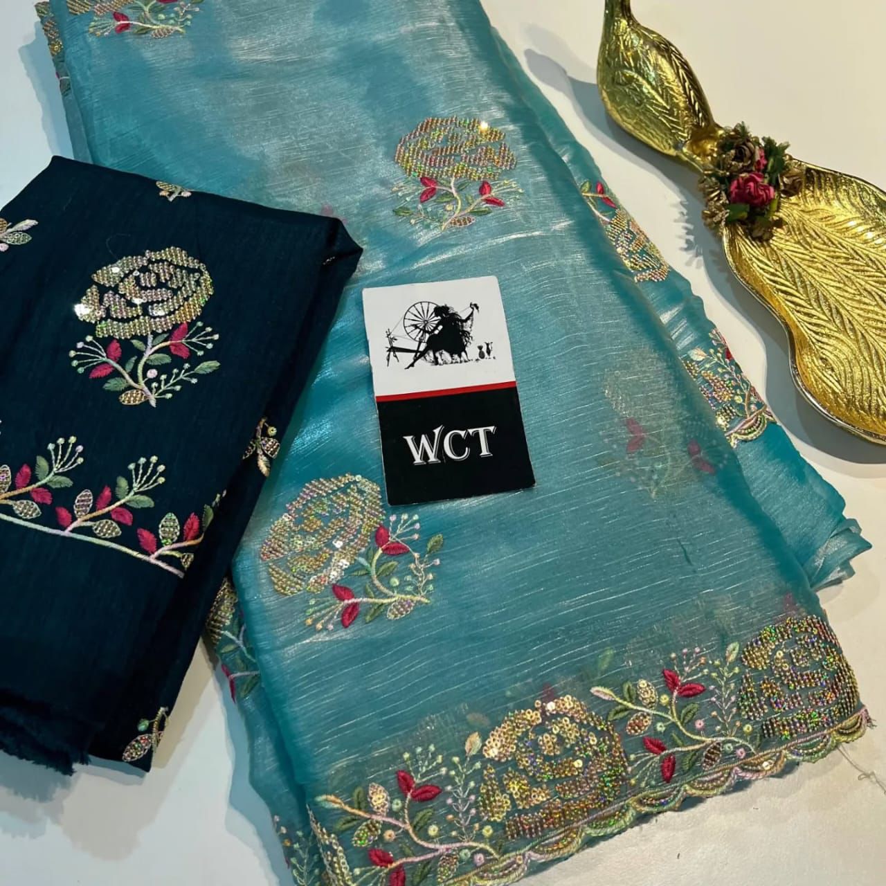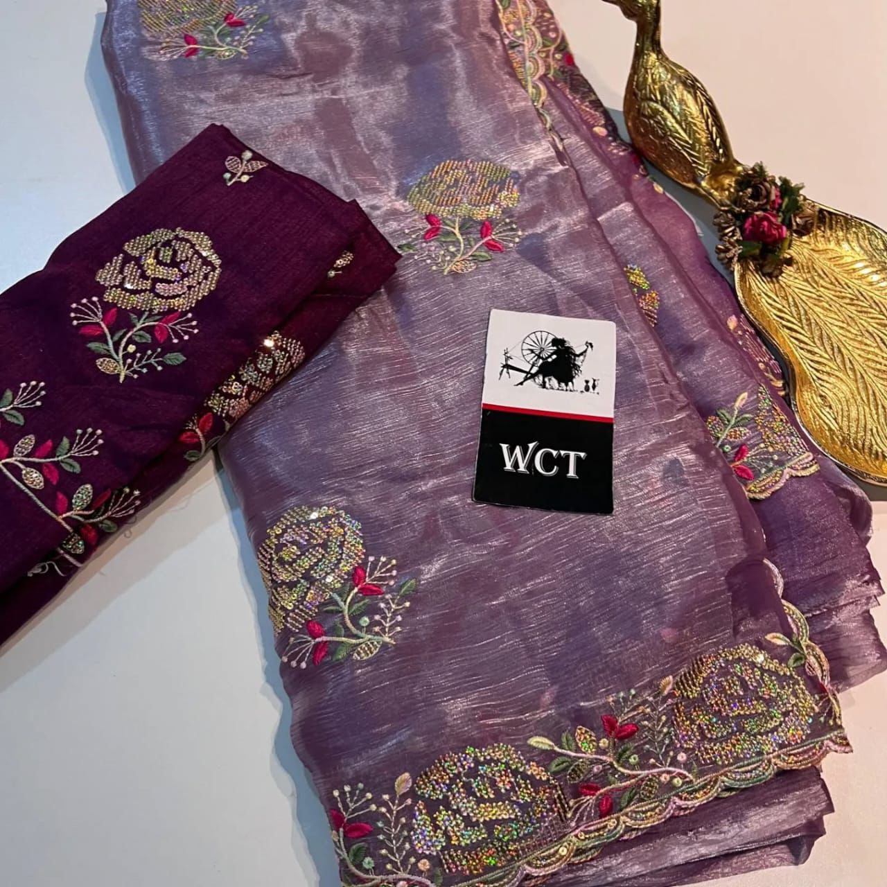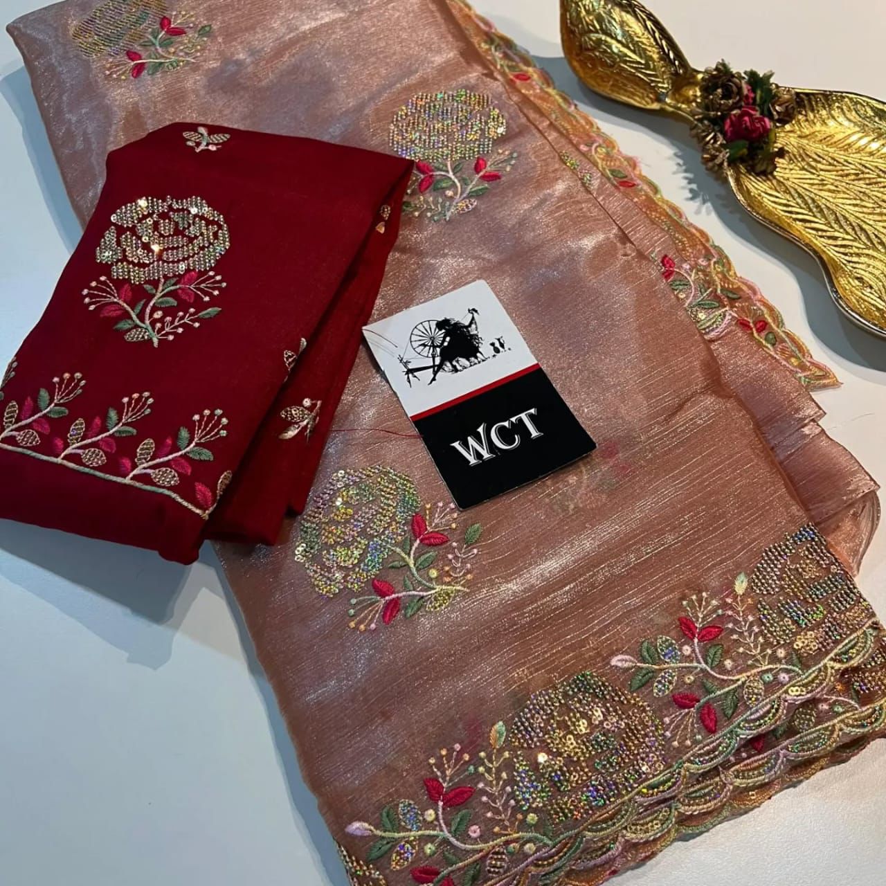 Beautiful premium Quality Jimmy choo Designer Saree with Beautiful Sequence Embroidery C-Pallu Saree