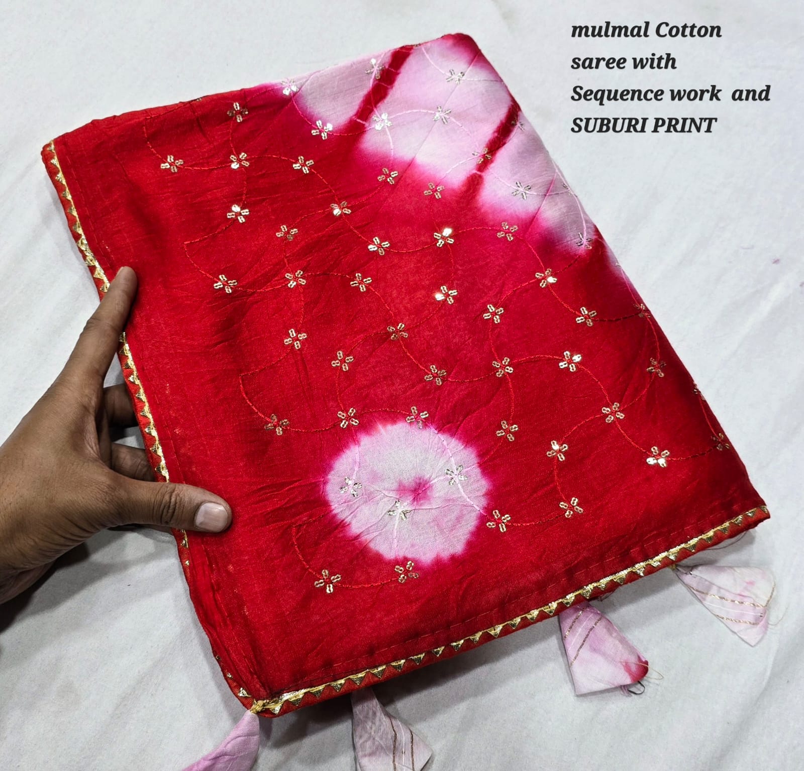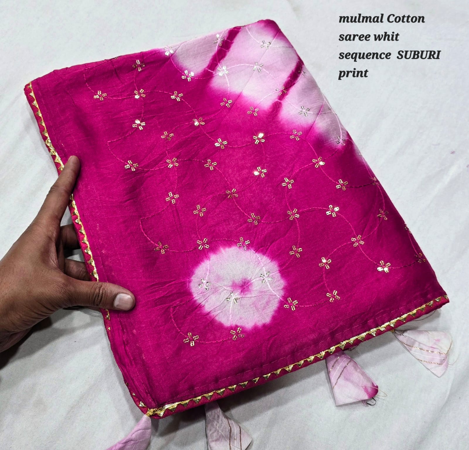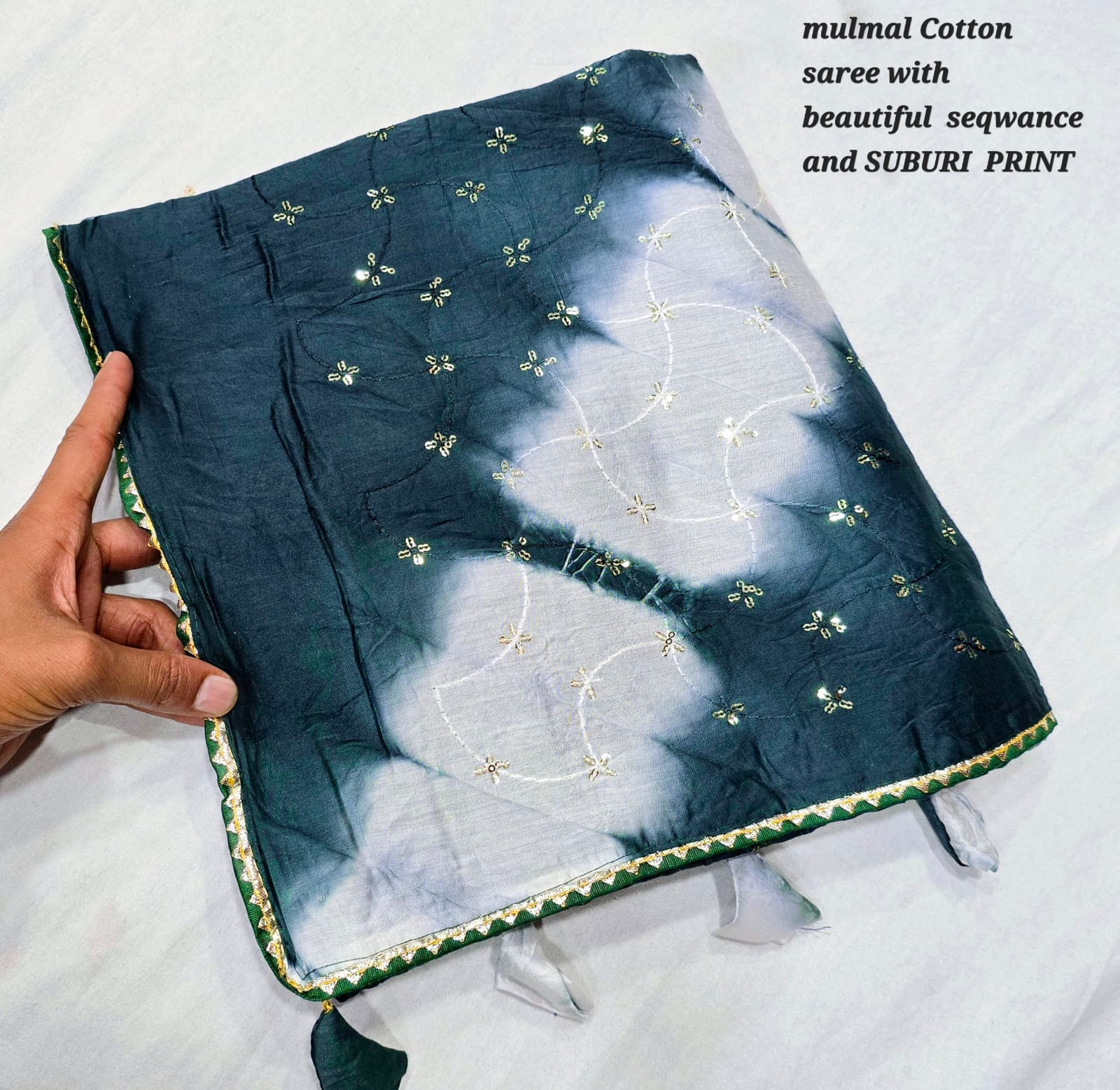 Saree :~ Muslin Soft Cotton Saree with 🥰 Beautiful sequence weaving with whole  Saree with Shibori Print