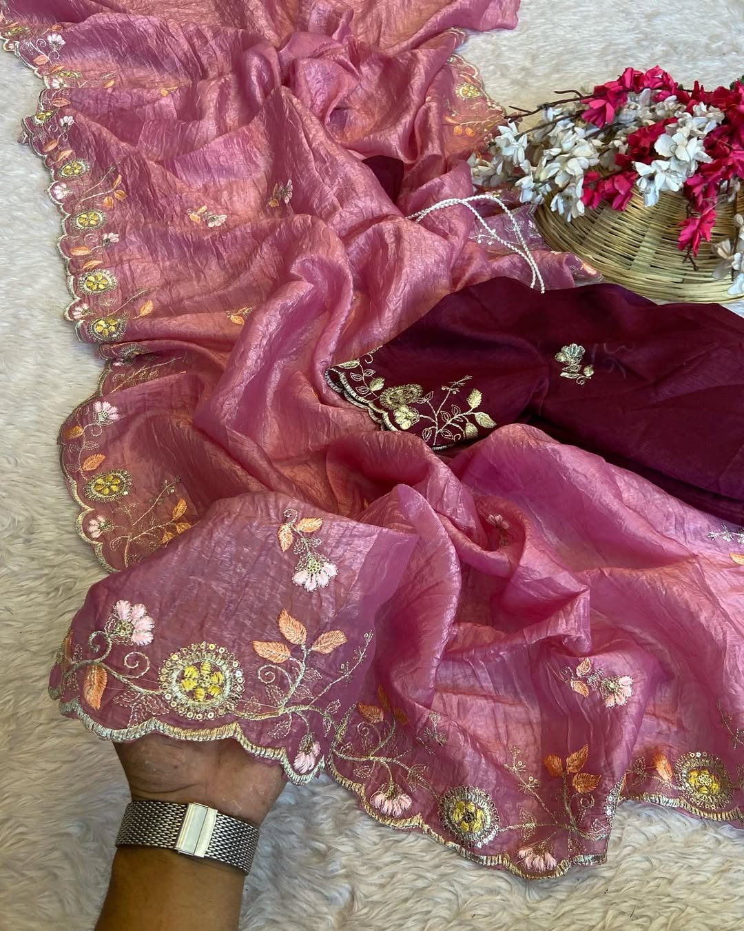 ▫️Work :- Designer “C” Pallu Work and with beautiful support butta all over saree