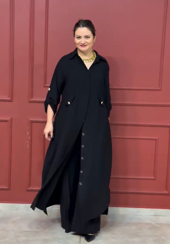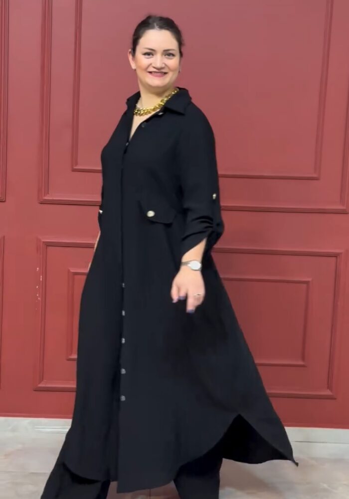 Thoughtful Details: Stylish buttons and convenient pockets add a touch of practicality without compromising on elegance.